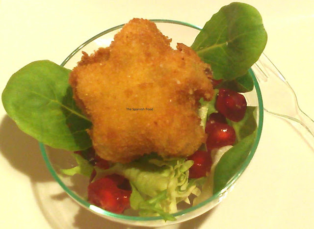 En un cazo con aceite de oliva muy caliente sumergimos el queso y lo freímos un momento hasta que el pan este dorado.
