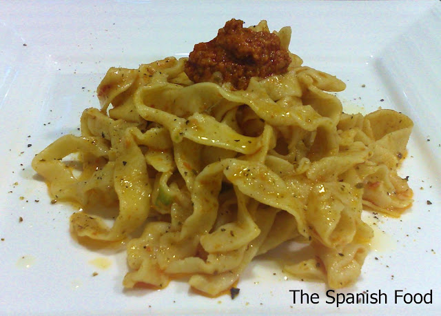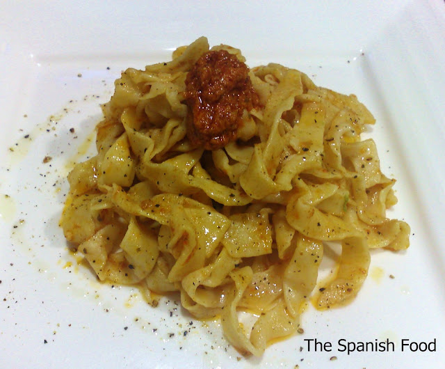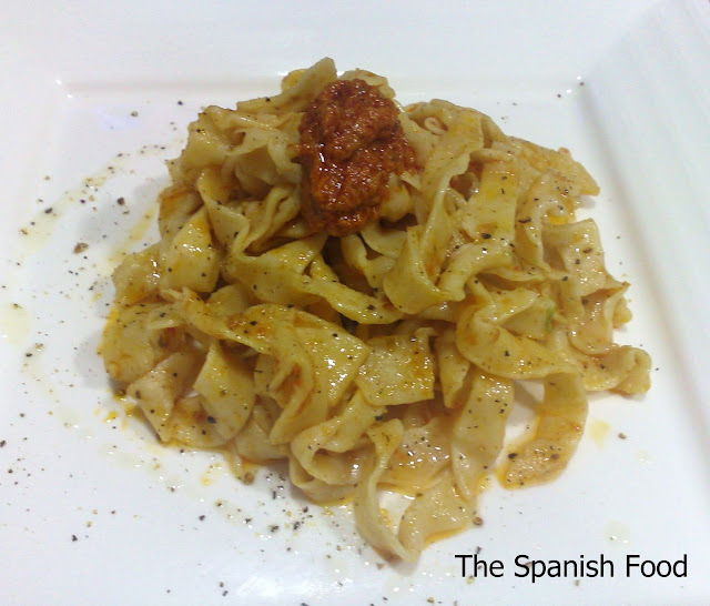 Y para no enmascarar demasiado el resultado, un pesto de tomate seco, muy sabroso, que le da a la pasta un sabor inigualable.