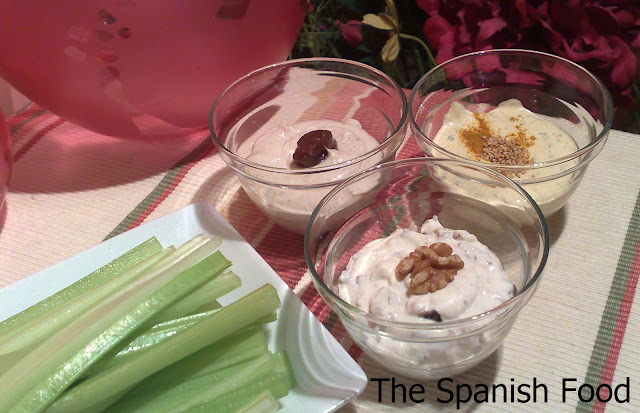APERITIVO DE APIO FRESCO CON DIPS DE