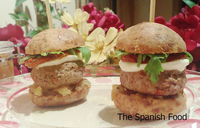 una deliciosa hamburguesa de ibérico que tienen en su carta. Una ración pequeña, perfecta para disfrutarla. Aquí hemos hecho alguna variación, así que si probáis las dos, luego nos contáis. Las hemos preparado en raciones minis, perfectas para compartir con los amigos, una fiesta, un buffet,...