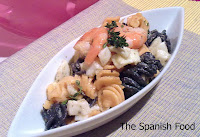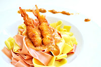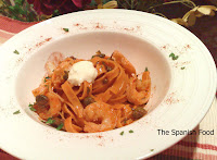 TALLARINES DE TOMATE CON AJO Y GAMBAS