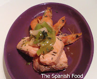 SALTEADO DE SALMON, LANGOSTINOS Y AJOS TIERNOS