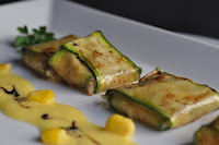 RAVIOLIS DE CALABACIN RELLENOS DE GAMBAS Y BERENJENA
