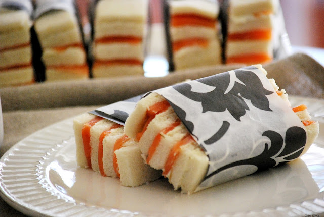 cena de picoteo, para presentarlos mejor les he puesto este papel especial para bocadillos, de Mandisign,