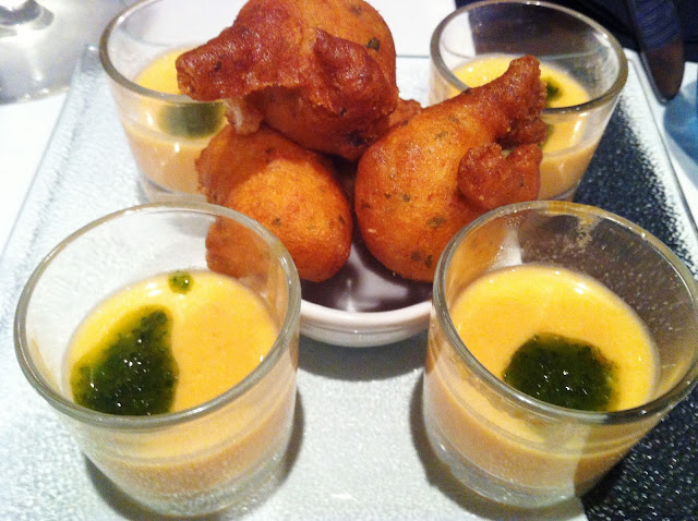 | Aperitivo: Buñuelos de bacalao y Salmorejos |