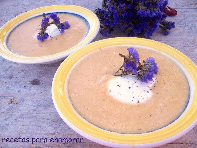 Recetas para enamorar nos propone una crema de calabaza asada con miel. La calabaza asada tiene un sabor extraordinario en las cremas, nada que ver con el que tiene cuando la hervimos. Os la recomendamos, es deliciosa. La compartimos en el Especial Sopas y Cremas frías y en la sección LAS RECETAS DE LOS BLOGUEROS .