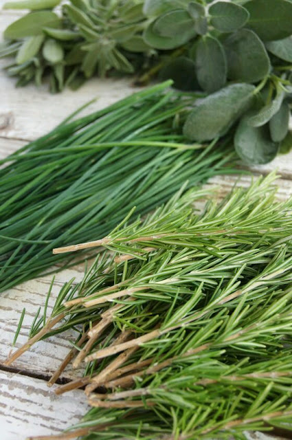 • manojos frescos de hierbas que encontrarás fácilmente en un mercado