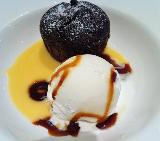 Tarta templada de chocolate con helado de vainilla