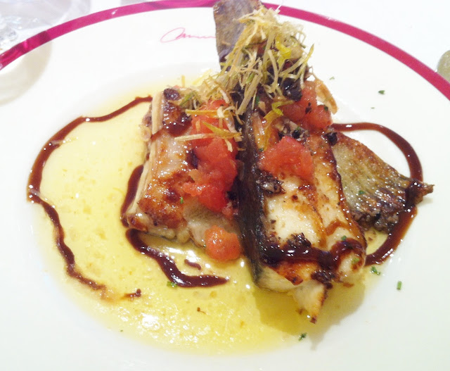 | RODABALLO CON VINAGRETA DE TOMATE, TRUFA Y CRUJIENTE DE PUERRO |