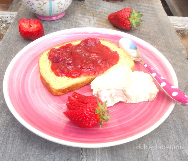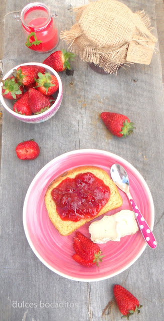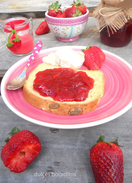 No hay nada mejor que los productos caseros, y no sé a vosotros, pero disfrutar de un desayuno con una buena mermelada casera es una de las mejores cosas que hay. Esta mermelada de Dulces Bocaditos nos ha hecho la boca agua: fresas y vainilla. Y como vereis es muy fácil de preparar.