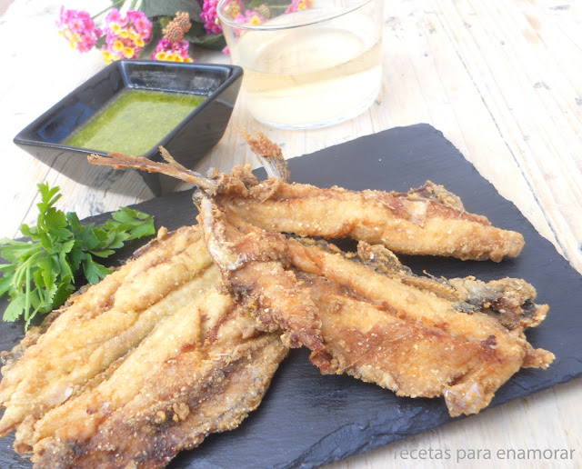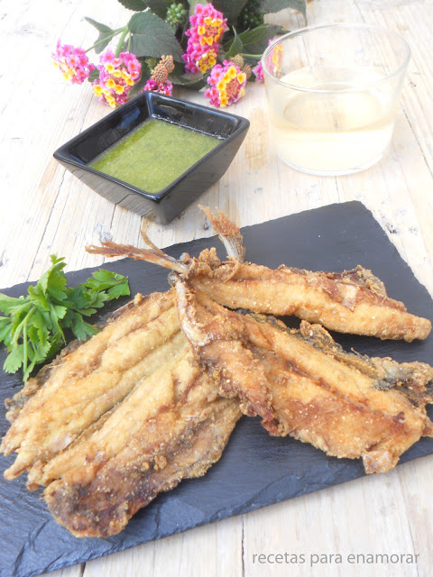 Unas sardinas muy crujientes y sabrosas como las hacía mi madre con la harina de garbanzo y el mojo verde que le da un toque muy rico.