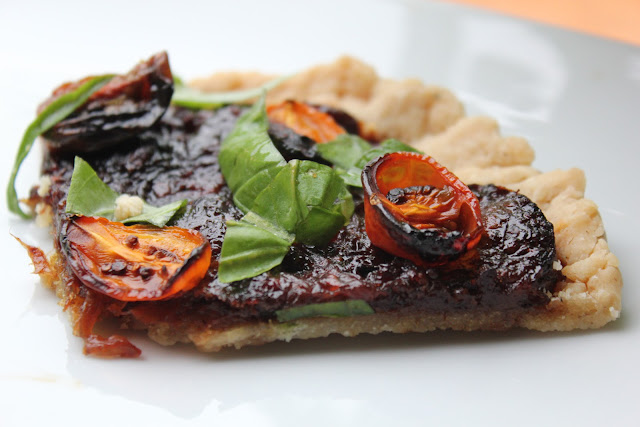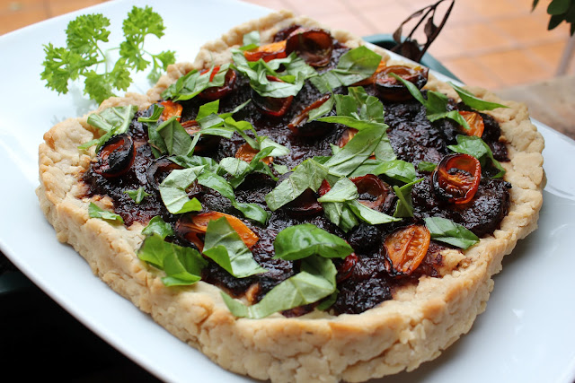 Me encantan las tartas saladas, y aunque prefiero las quichés, ésta que has hecho... qué rica, me quito el sombrero. La combinación de ingredientes es muy original y no tengo duda de que también sabrosa!