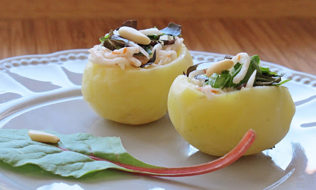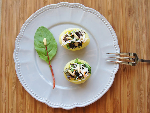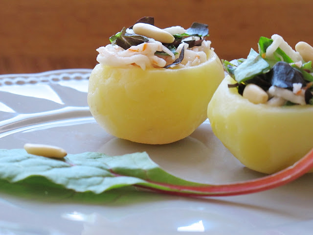 Me encantan las patatitas pequeñas.  Bueno, como buen gourmet, me gusta todo lo que se sirve pequeño. Pequeño pero delicioso. Como estas patatas rellenas de cosas ricas que parecen bombones salados.