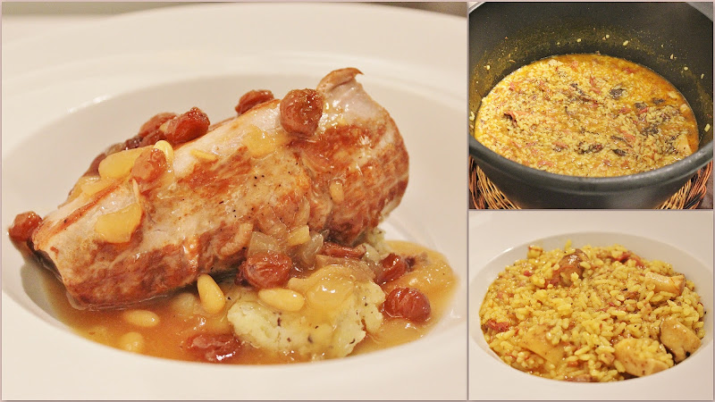 - Solomillo ibérico, reducción de moscatel y uvas pasas con parmentier de patatas trufadas