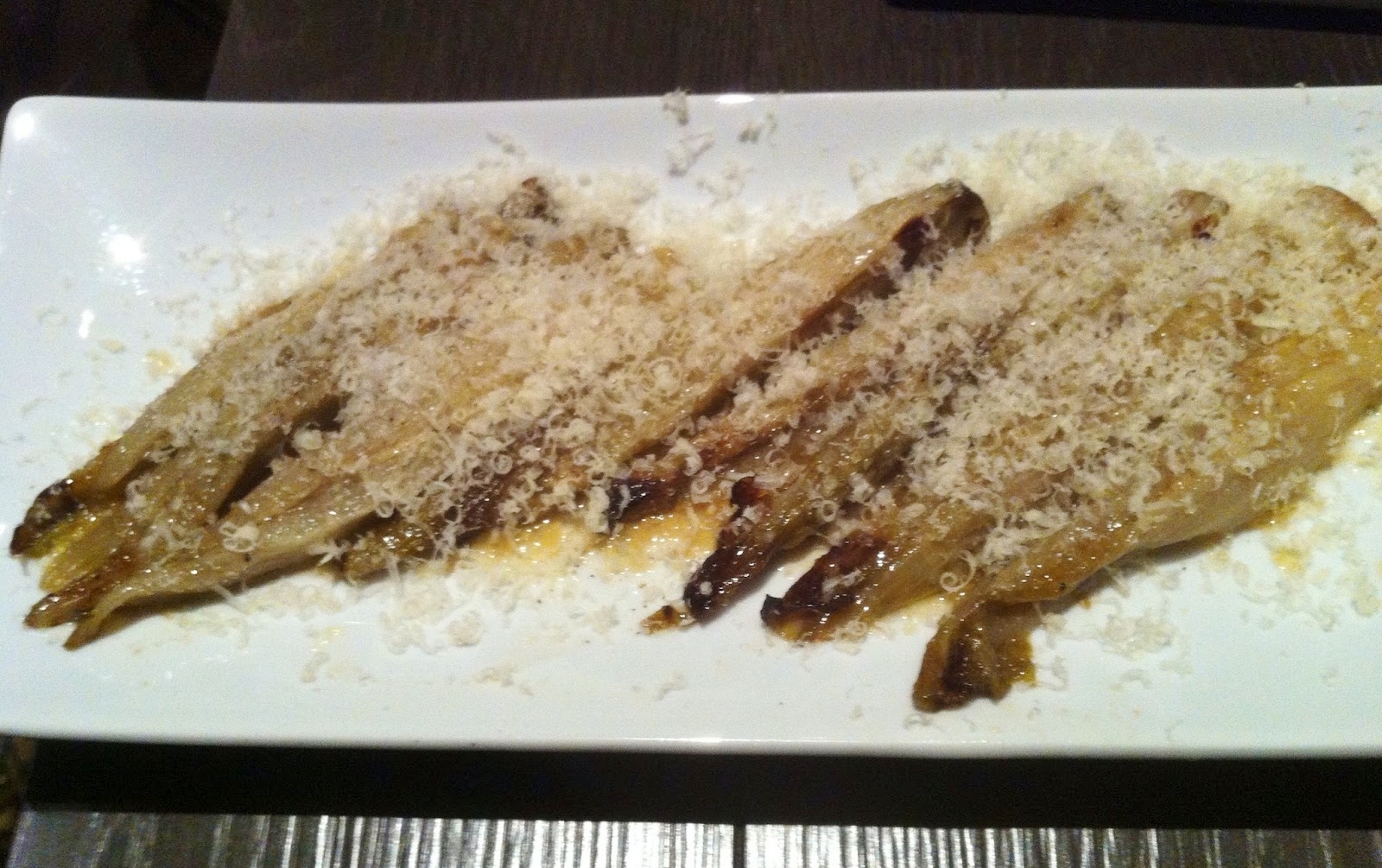 Siguiendo con el festival de la tapa, nos tomamos unas endivias con Idiazábal . ¿Cuál fue nuestra sorpresa? La presentación de las endivias, que sino me equivoco estaban hechas al horno con un sabor muy tierno y un acompañamiento inmejorable. Creo que de los mejores platos por no decir el mejor.
