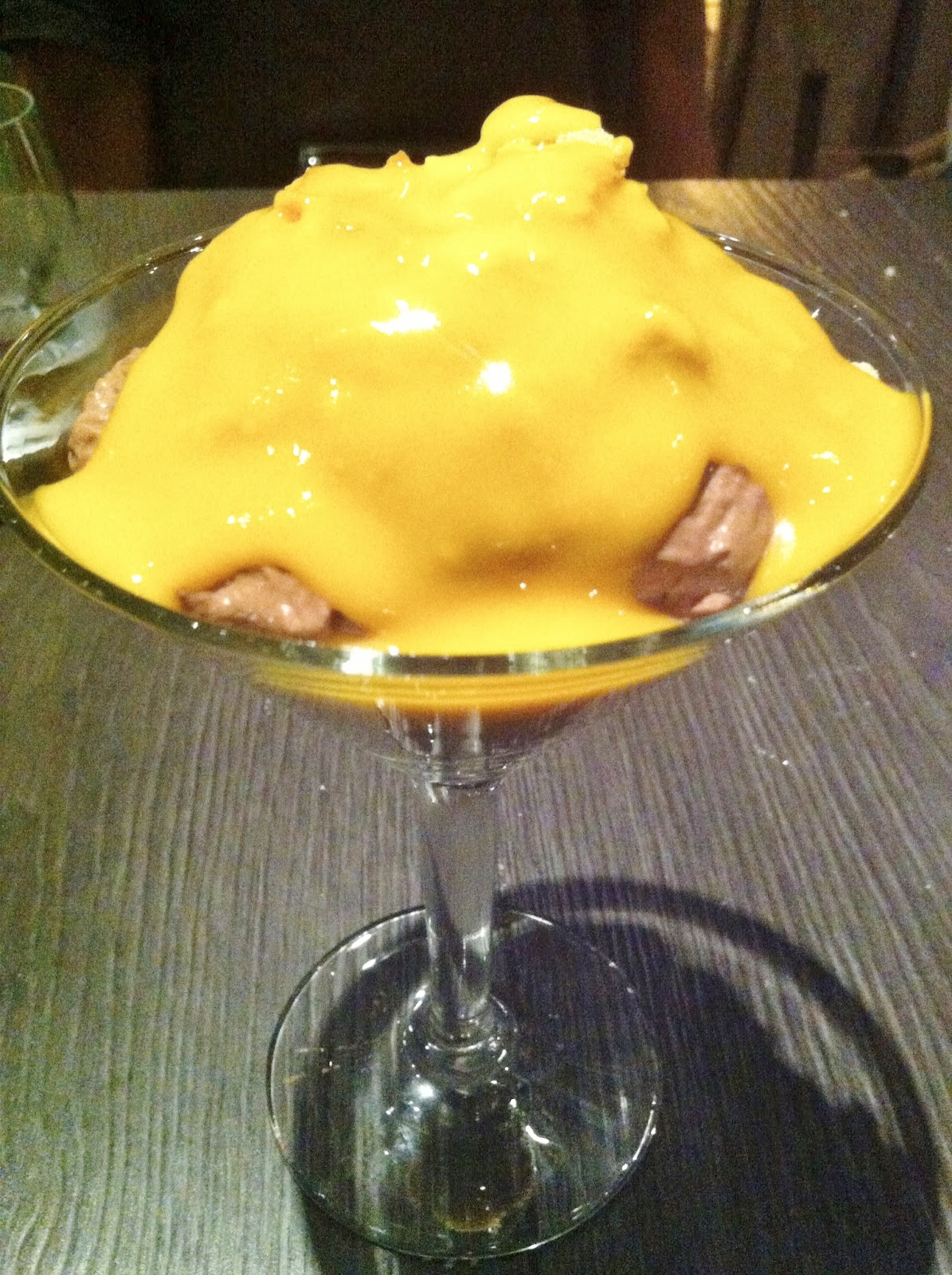 De postre una mousse de chocolate con mango . Bien, no estaba mal.