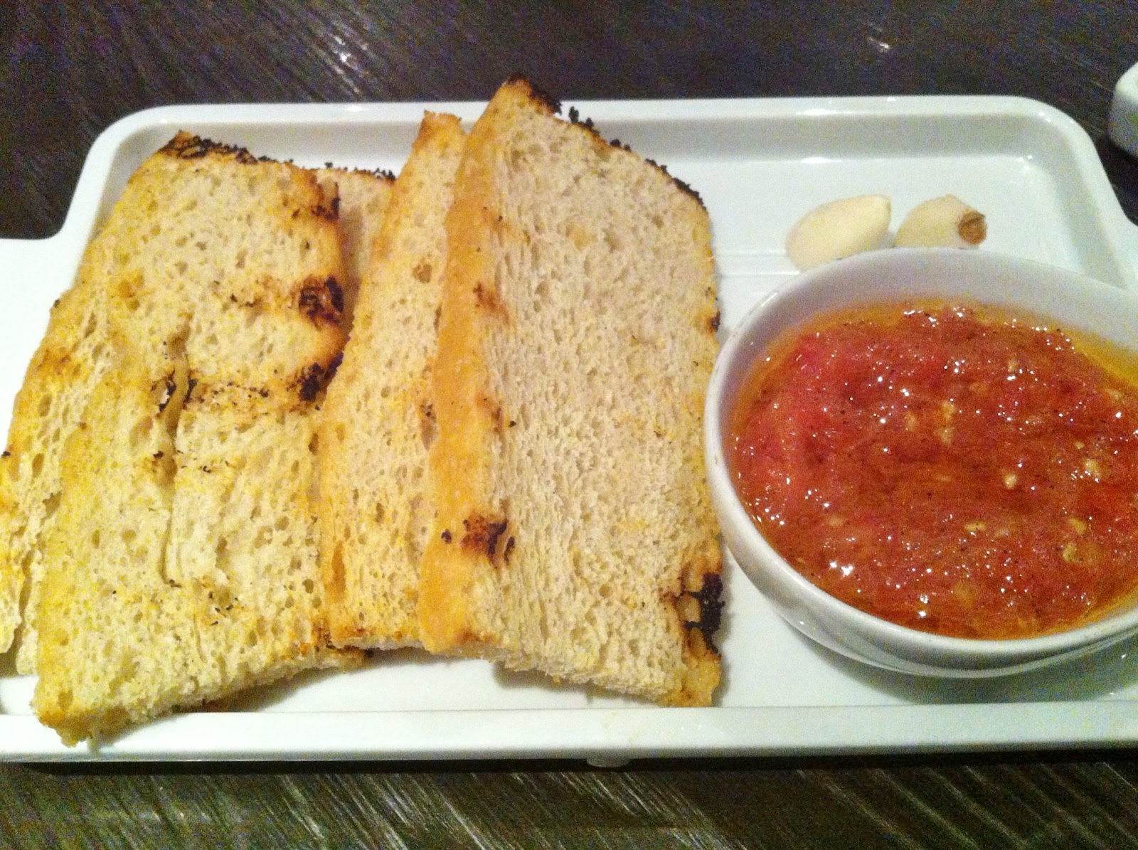 Tras explicarnos la carta y guiarnos un poco, el camarero nos trajo pan con tomate . Bien, para ir abriendo boca.