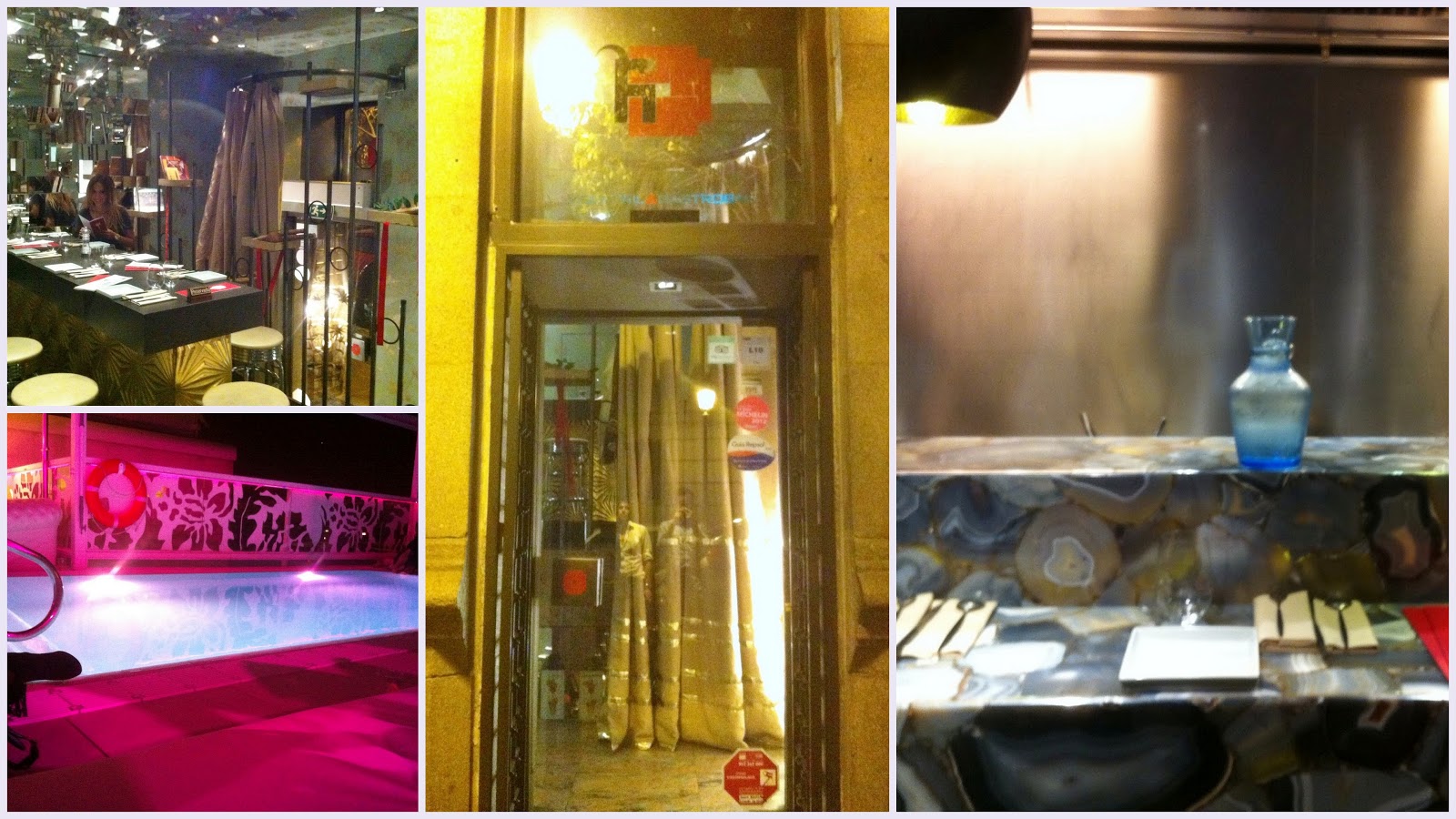 Llegamos y bueno, como aquí cuento siempre mi experiencia en los restaurantes, hoy no va a ser menos. Lo dicho, llegamos...mesa para 2, blablabla. Parece ser que allí no hay mesas al uso, tienes que compartir una gran mesa para 10 comensales ó comer en la barra ó en unas mesas bajas nada propias para cenar.