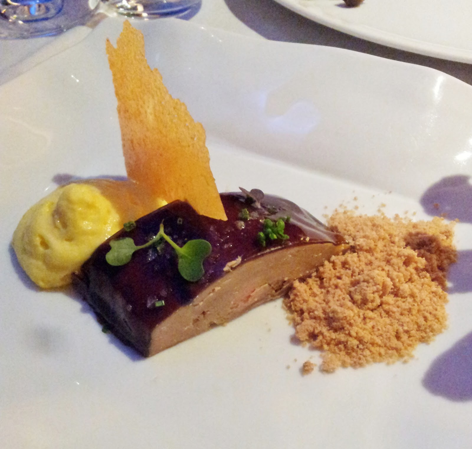 Como entrante pedimos un foie lacado con polvo de kikos y espuma de maiz que te sirven con unas tostas de pan extrafinas. No me pudo gustar más, teníamos que haber pedido un plato para cada uno.
