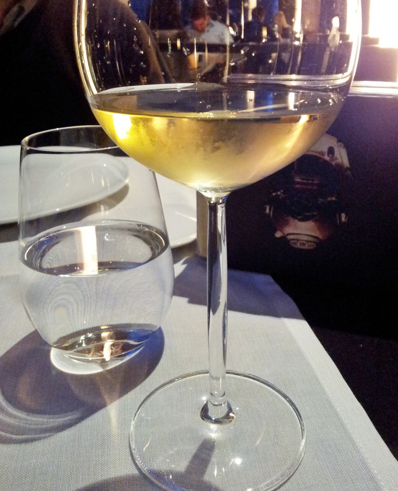 El servicio excelente, camareros siempre atentos a rellenar la copa de vino y servirte agua fresca. El tiempo entre los platos, adecuado. Te retiran cubiertos y platos cada vez, no tienes la sensación de mesa llena que a mí muchas veces me agobia. El precio, 105 €, no es barato, pero el entorno, la decoración y la comida bien vale darse un capricho de vez en cuando.