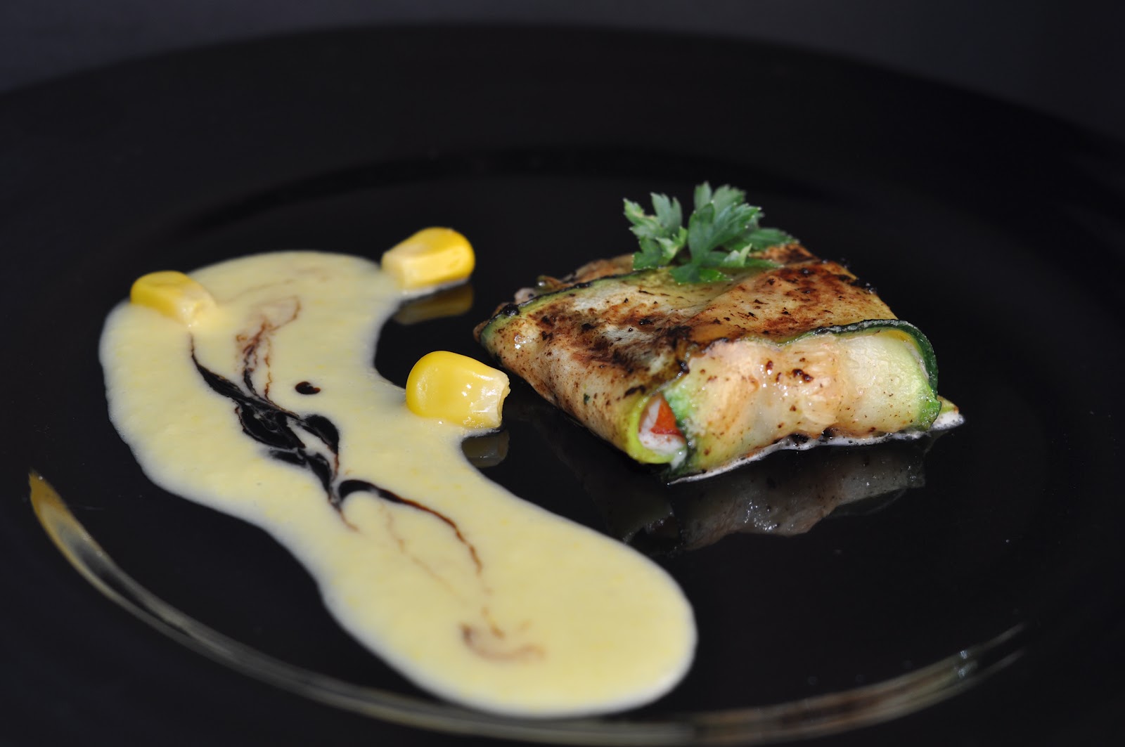 RAVIOLIS DE CALABACÍN RELLENOS DE GAMBAS Y BERENJENAS