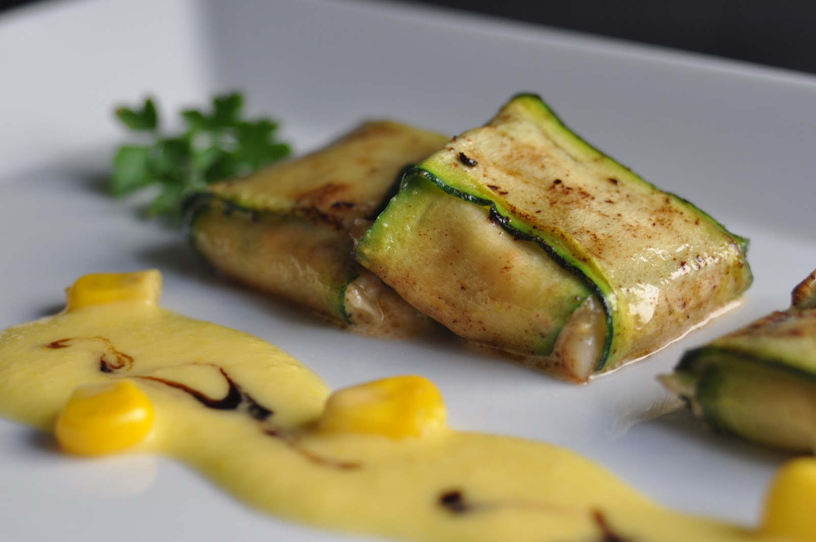 . Se trata de unos raviolis de calabacín con un relleno a base de gambas y berenjena, que puedes preparar para tomar como primer plato o como plato único si lo acompañas de guarnición de