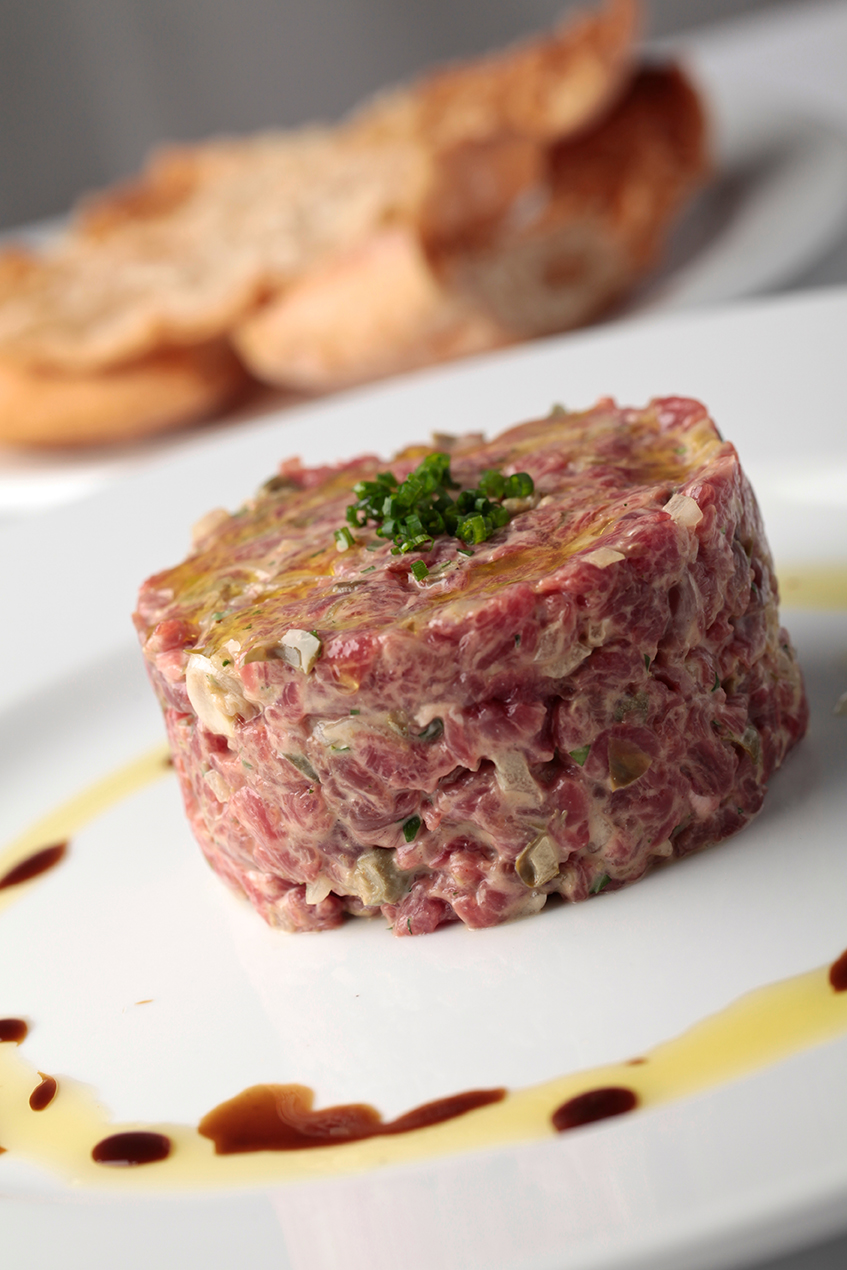 - Steack tartar con pan cristal.
