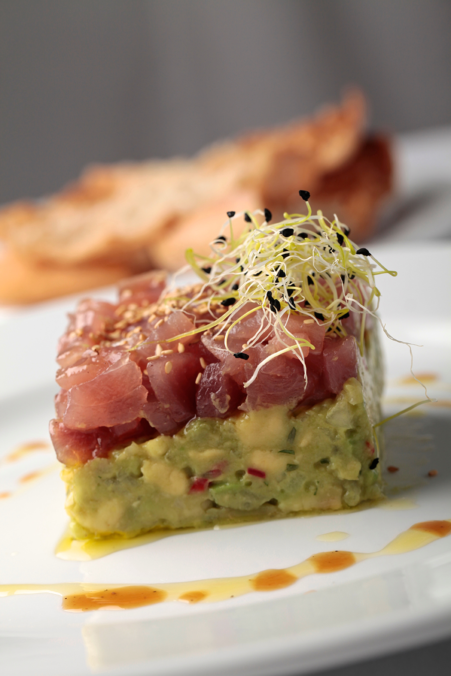 - Tartar de atún con aguacate y sésamo tostado.