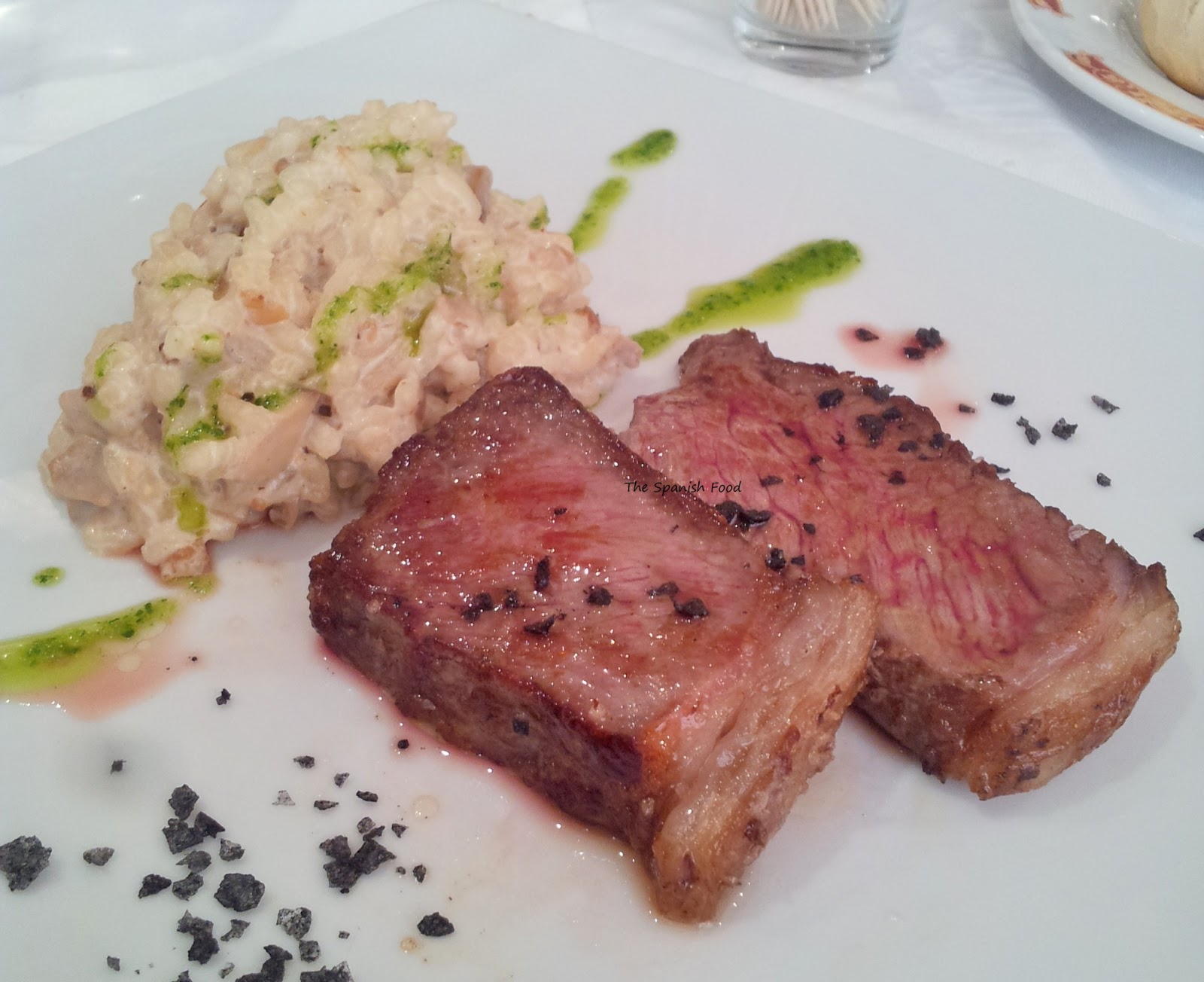 ternera DO Extremadura a la plancha servido con arroz meloso con boletus