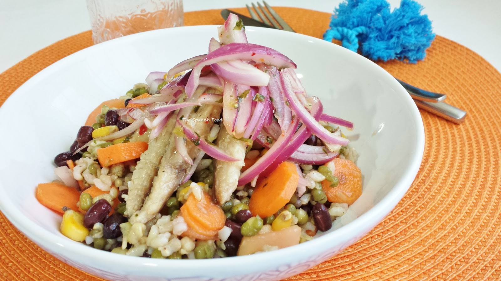 ENSALADA DE SOJA, ARROZ Y AZUKIS CON CABALLA