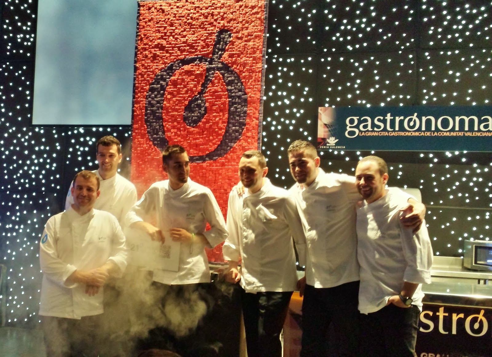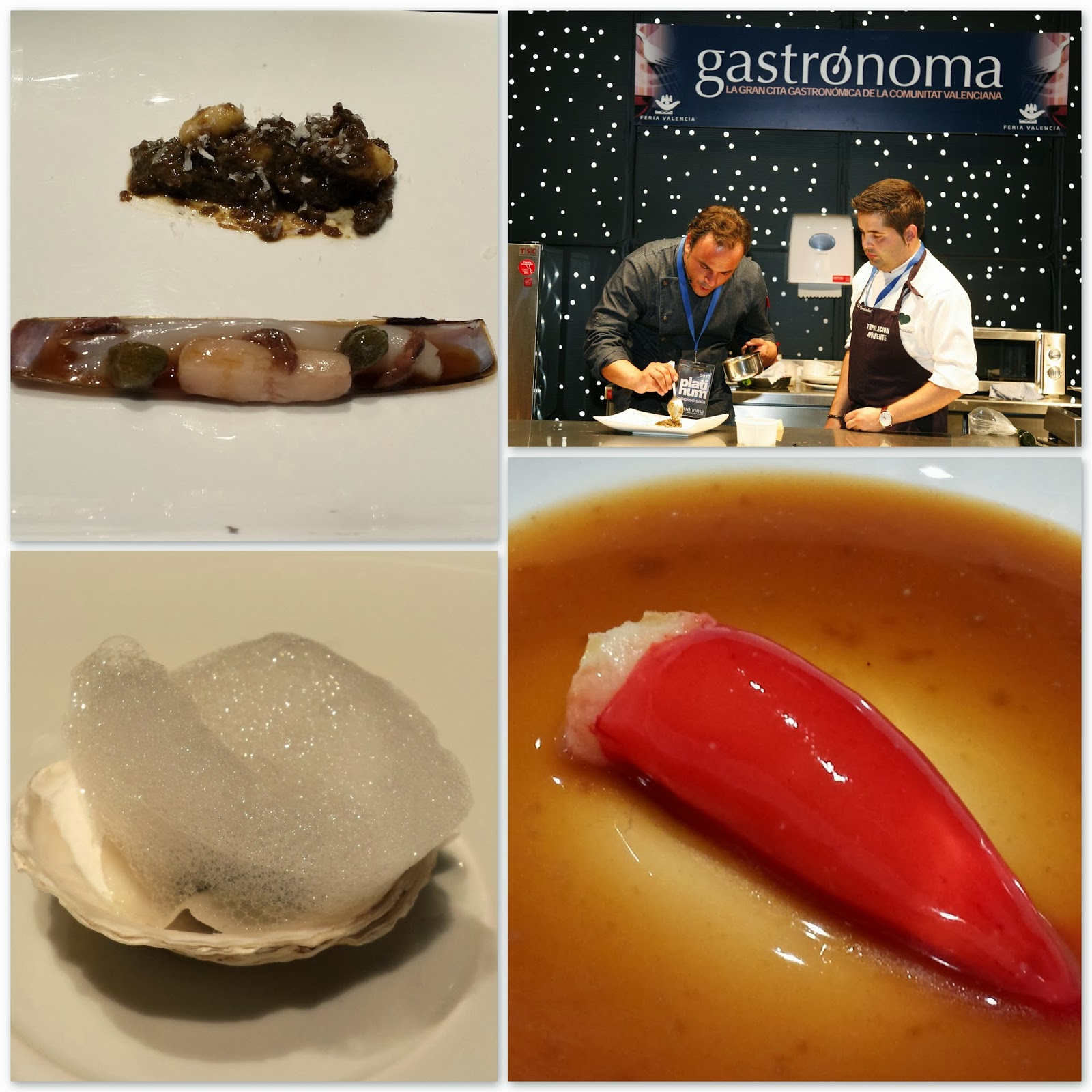 Otras ponencias que han mantenido abarrotada la Plaza Activa a lo largo de la jornada han sido las de Víctor Gutiérrez (del restaurante homónimo en Salamanca, con una estrella Michelin), Luis Arrufat ( Casino Antiguo , Castellón), Raúl Aleixandre (ex Ca Sento, Valencia) o el colectivo 21° Brix , con seis primeras figuras de la repostería catalana y española que han homenajeado a Gastrónoma con un mosaico de más de 3 mil nubes dulces reproduciendo la “Ó” del logo del certamen. Uno de ellos, Rubén Álvarez , ha presentado en una ponencia propia su nuevo proyecto empresarial en torno a la gastronomía dulce: 33/35 Studio.
