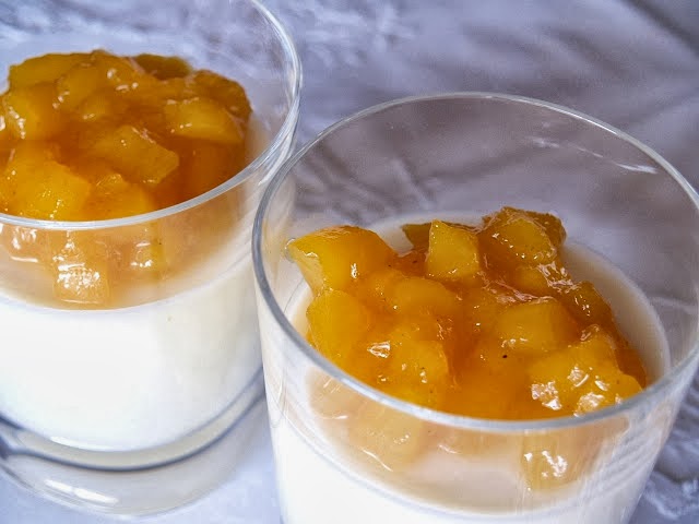 Servir los vasitos de crema con el mango por encima (frío) o la fruta que os guste.