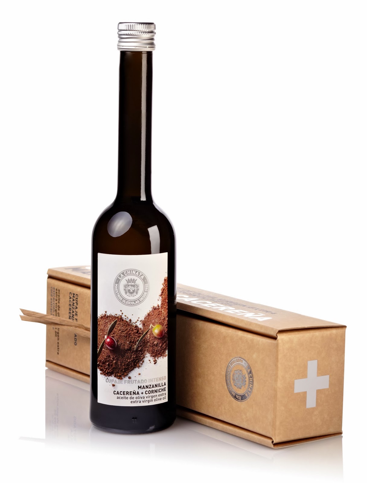 . Las aceitunas deben estar en su grado de maduración óptimo, limpias, sanas y sin defecto externo aparente. Solo mediante este sistema de selección, se puede garantizar un Virgen Extra de una excelente calidad. El aceite de oliva virgen extra de La Chinata se caracteriza por cuatro factores: