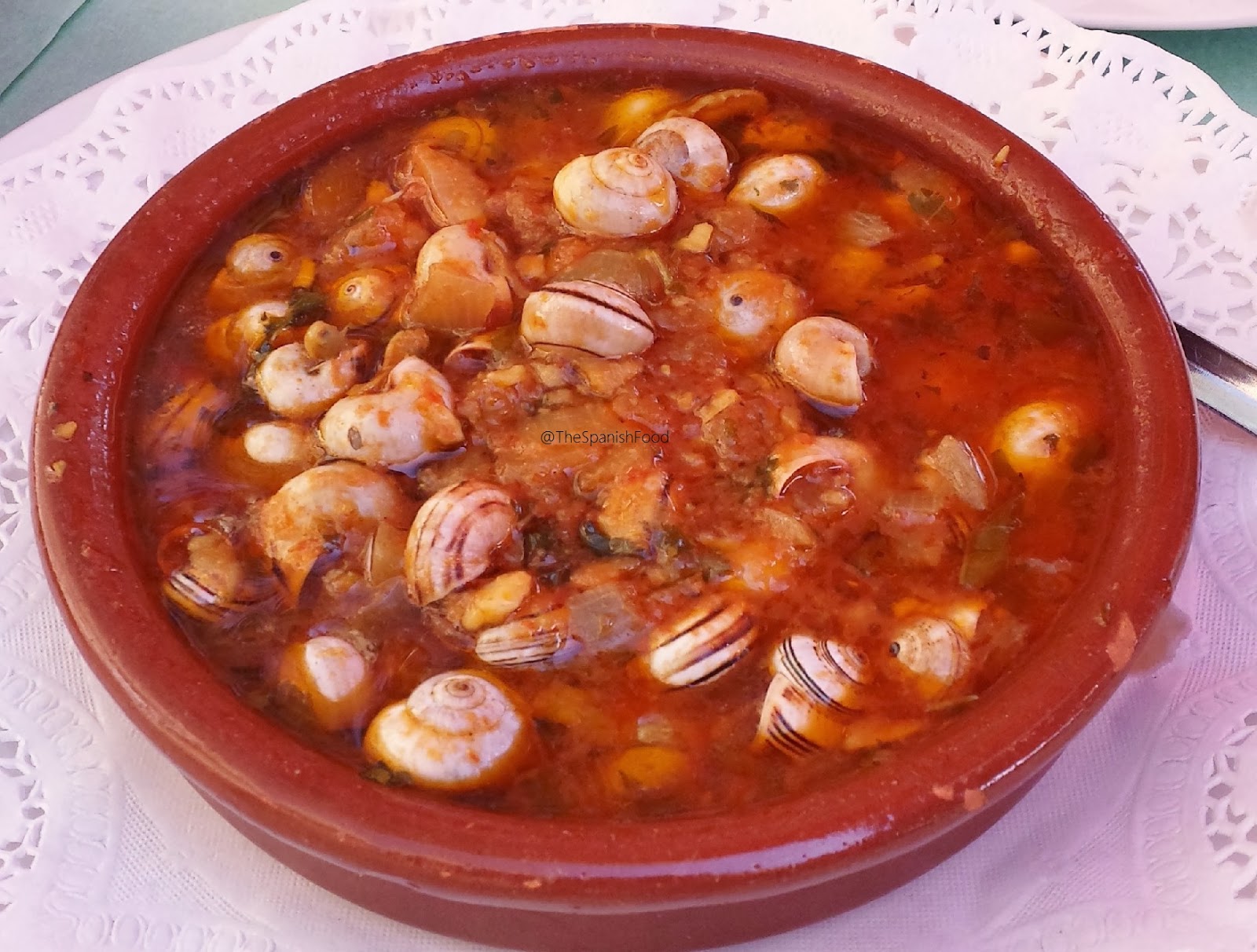 con una salsa de almendra, pimentón y hierbabuena, otra de las tapas que nos sirvieron. He de decir que los caracoles no me gustan, pero por los cometarios de mis compañeros, estaban muy buenos, y la salsita... para mojar mucho pan.