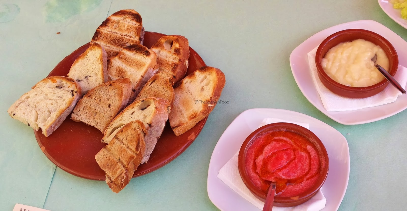 pan de carrasca, de aceitunas y de centeno, tomate rallado rallado con aceite de oliva y allioli casero