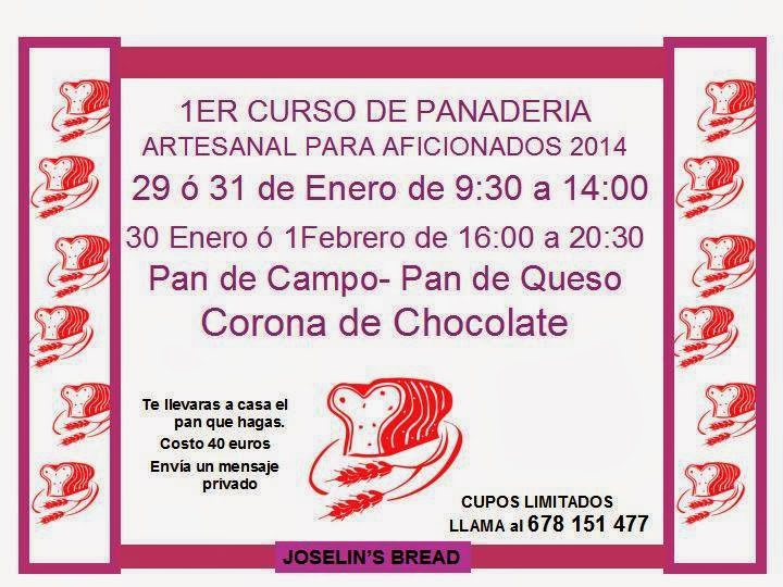 primer Taller de Panaderia para aficionados de este año se realizará en las siguientes fechas: