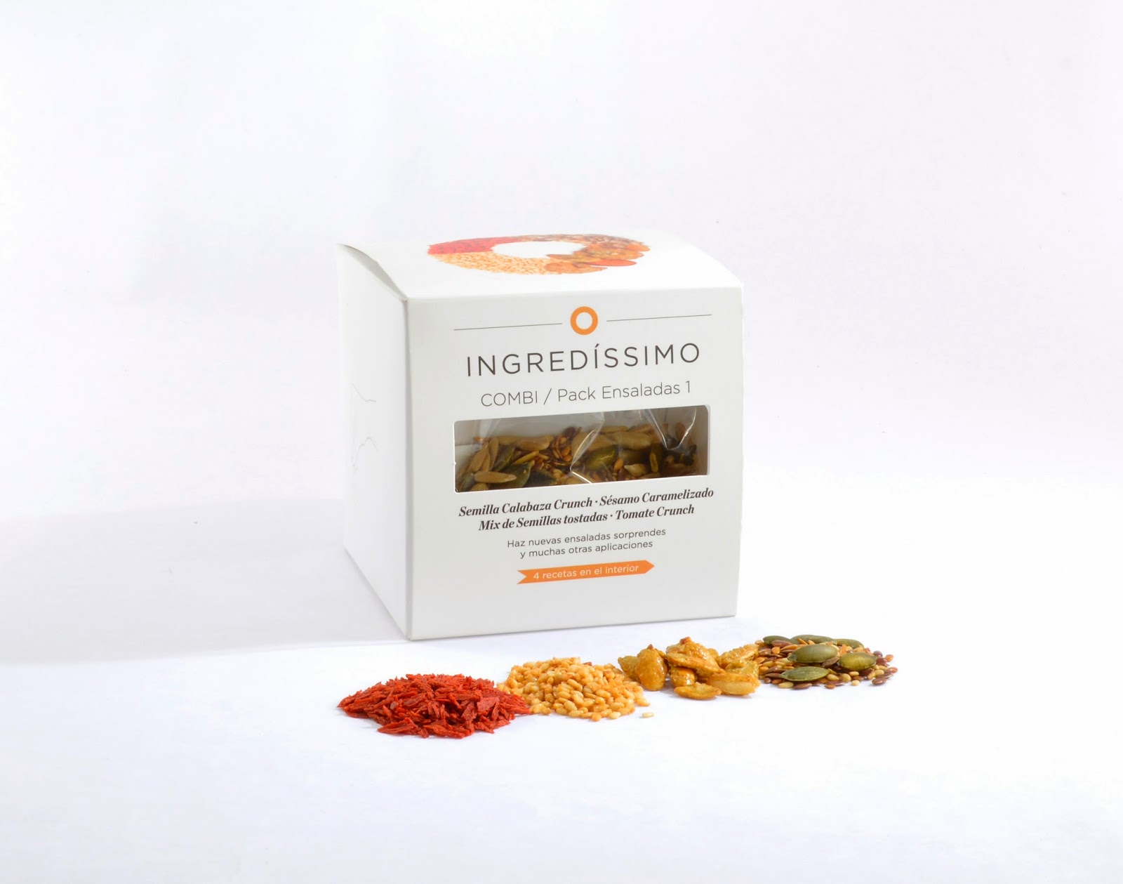 Dos Packs Combi con distintos Ingredíssimos para combinar todo tipo de ensaladas con distintas texturas y sabores.Cuentan con ingredientes para todos los gustos, desde el Sésamo Caramelizado, el Mix de Semillas tostado, los Dados de Miel y Fresa, hasta la Fresa Gumy o el Tomate Crunch. Toda una gama de sabores y texturas con las que nadie va a quedar indiferente.