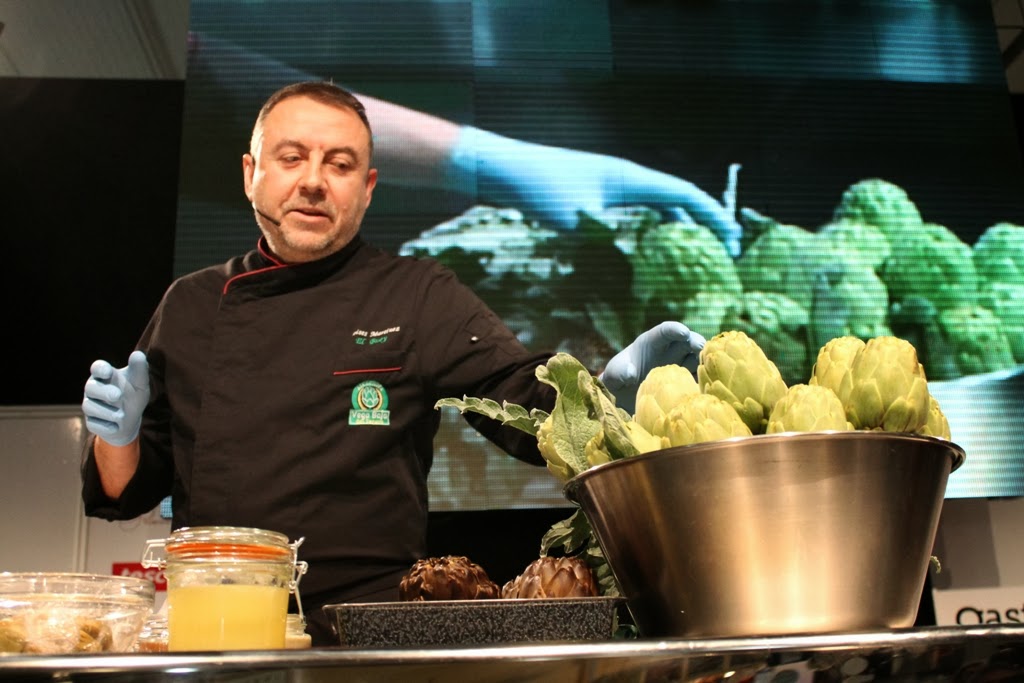 En este sentido, hoy han pasado por el escenario principal chefs de gran prestigio como Alfonso Egea (Casa Alfonso , Orihuela con 1 estrella Michelín); Moisés Martínez, (El Buey , Almoradí; Bib Gourmand); Natxo Sellés (El Laurel , Concentaina; Bib Gourmand); César Marquiegui (Nou Manolín-Piripi ; Alicante; Sol Repsol) y Sergio Sierra (El portal , Alicante; Sol Repsol) junto a los reconocidos Manuel Morejón e Ignacio Giner (Abiss , Calpe); Toni Pérez (Las nanas de la cebolla , Orihuela); y Dani Frías (La Ereta , Alicante) que desde el escenario principal han abordado desde la cocina de siempre con toques de autor; la mediterránea con algas y la cocina de arte y diseño hasta la forma de trabajar en la cocina con su majestad la alcachofa de la Vega Baja.