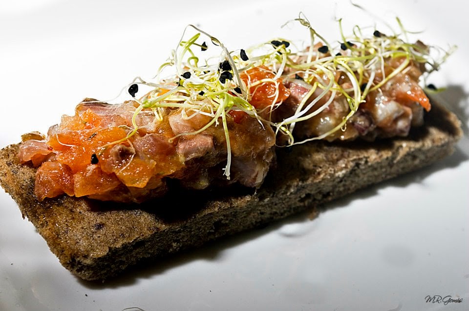 - el tartar de bonito marinado con sopita de ajoblanco de chufa valenciana