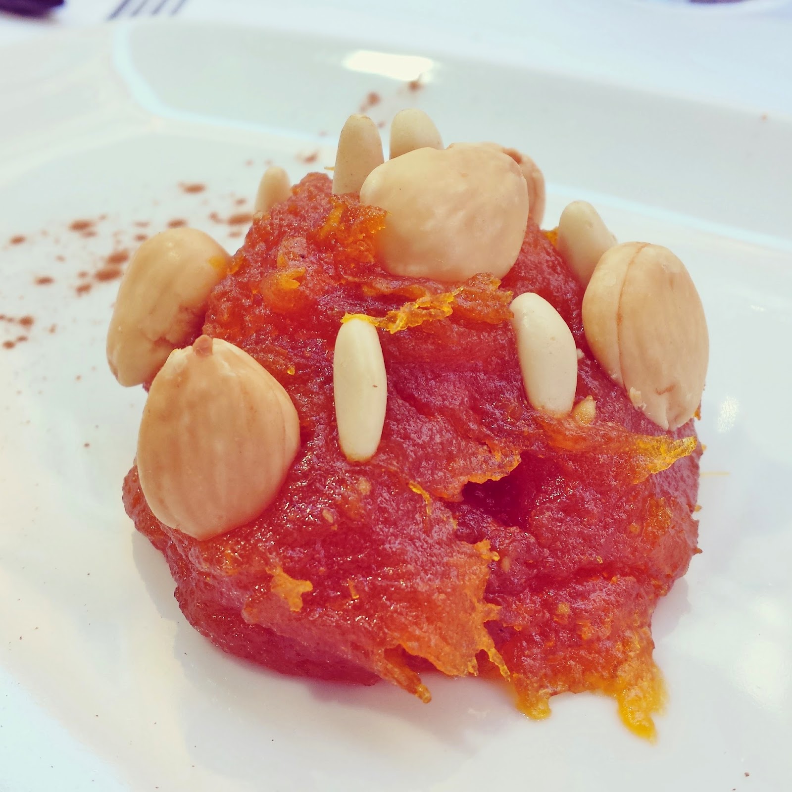De postre, arnadí , un dulce tradicional valenciano de orígen árabe muy típico durante las fiestas de Semana Santa, elaborado con calabaza asada, almendras, canela, huevos, limón... servido templado, es una pasta cremosa, dulce muy rica.
