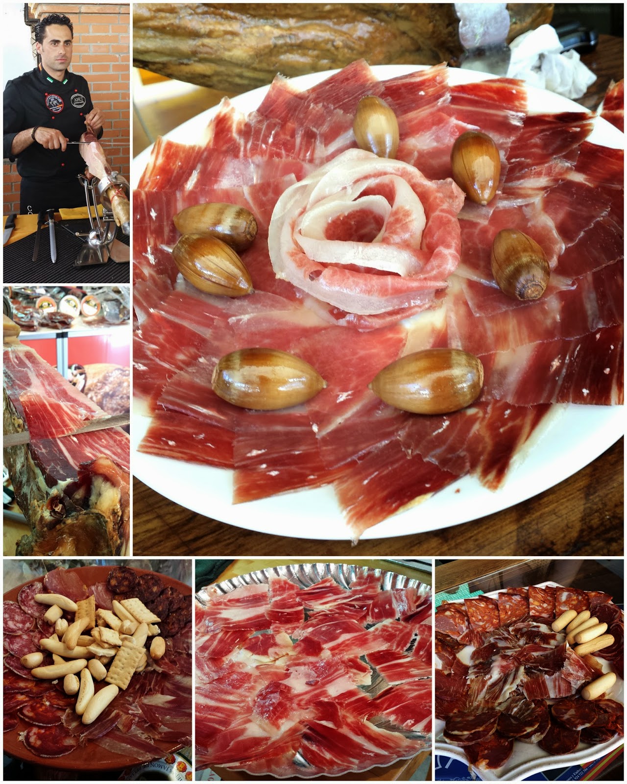 entre otros son algunos de los que visitamos; pudimos probar no sólo jamón, también lomo, chorizo, salchichón, paté,... y además, aprender a cortarlo, porque el corte de jamón es todo un arte y más complicado de lo que parece, si quieres hacerlo bien. Una de las actividades del Salón del Jamón es un