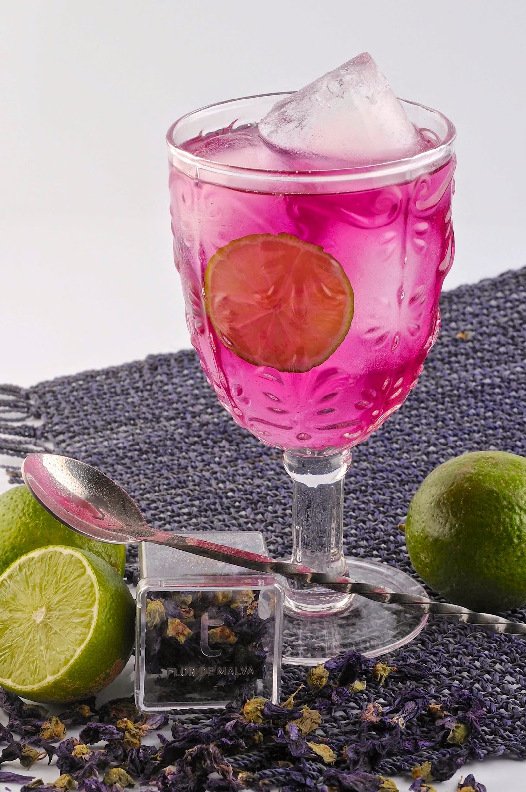 de las flores de malva, que le aporta un espectacular y atractivo color a la copa.