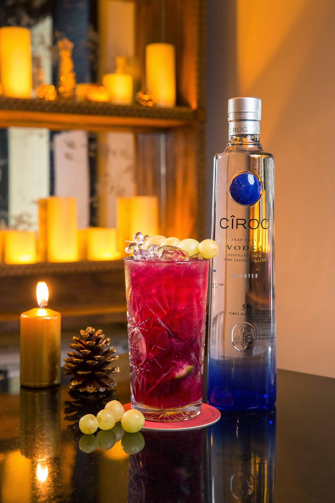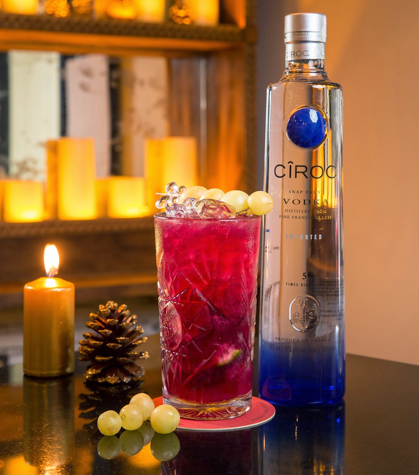 Las doce uvas tienen otro sabor si se sirven acompañados de Cîroc -el champagne de los vodkas- zumo de lima, azúcar de mazapán y zumo de granada. Esta es la original mezcla que ha creado Carlos Moreno, bartender de StreetXO en Madrid, para despedir el año y en la que el ingrediente protagonista son las doce uvas que introduce en su receta en forma de decoración y machacadas para extraer todo su jugo. Un cóctel a la altura de esta fecha tan especial.