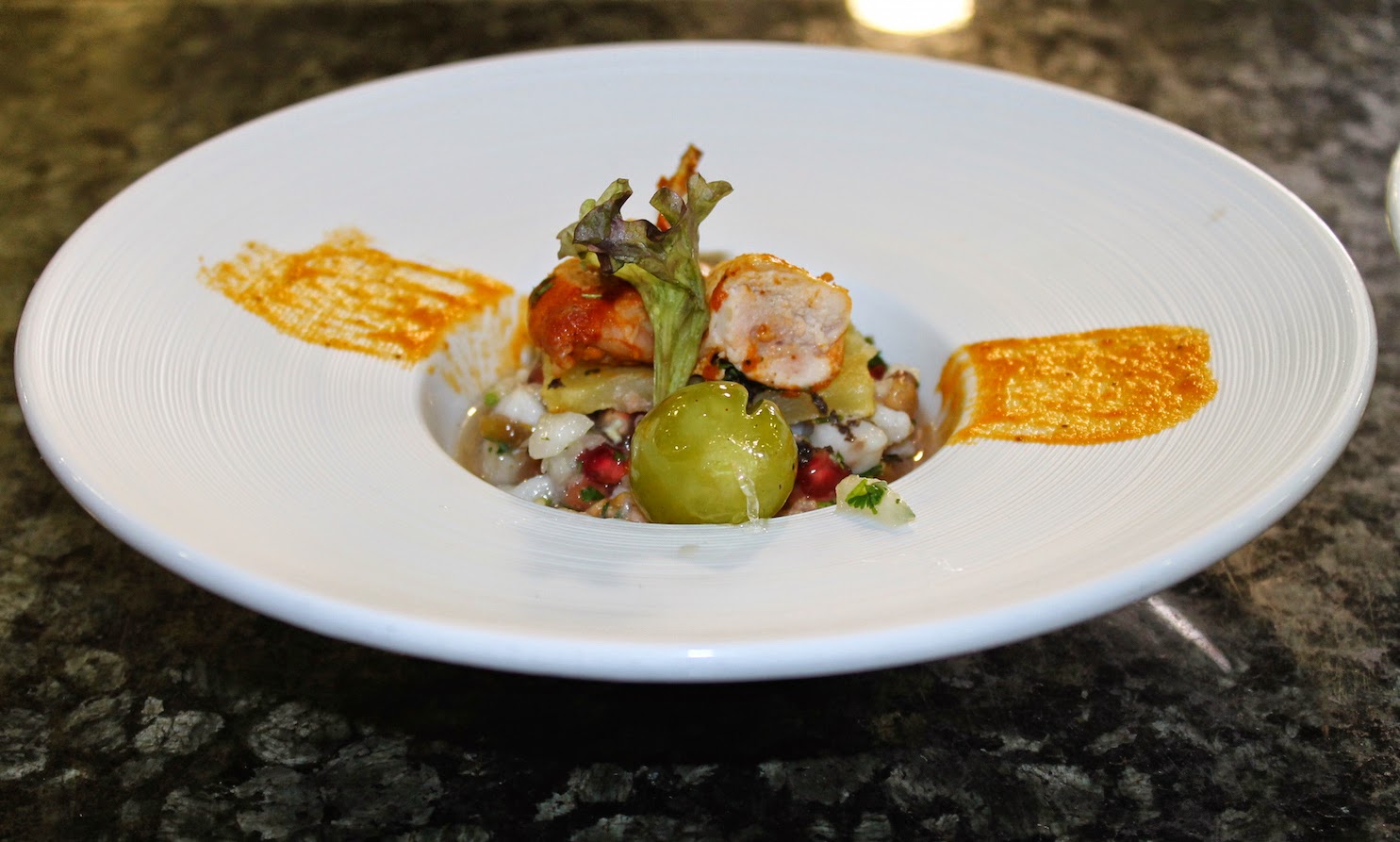 que ha elaborado un plato de ‘Codorniz adobada sobre timbal de ceviche de lubina y granada y su refrescante’.