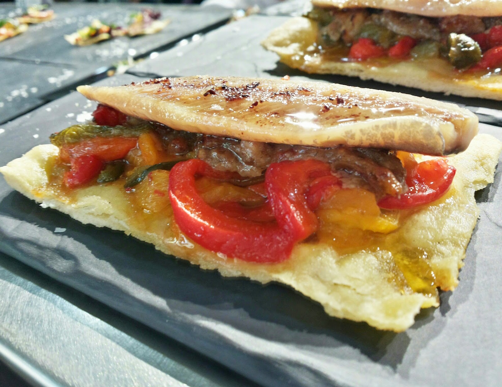 - una coca de jurel en salazón y pimiento dulce , en donde la tradición se conjugaba a la perfección con las técnicas más vanguardistas y así presentar este producto tan emblemático.
