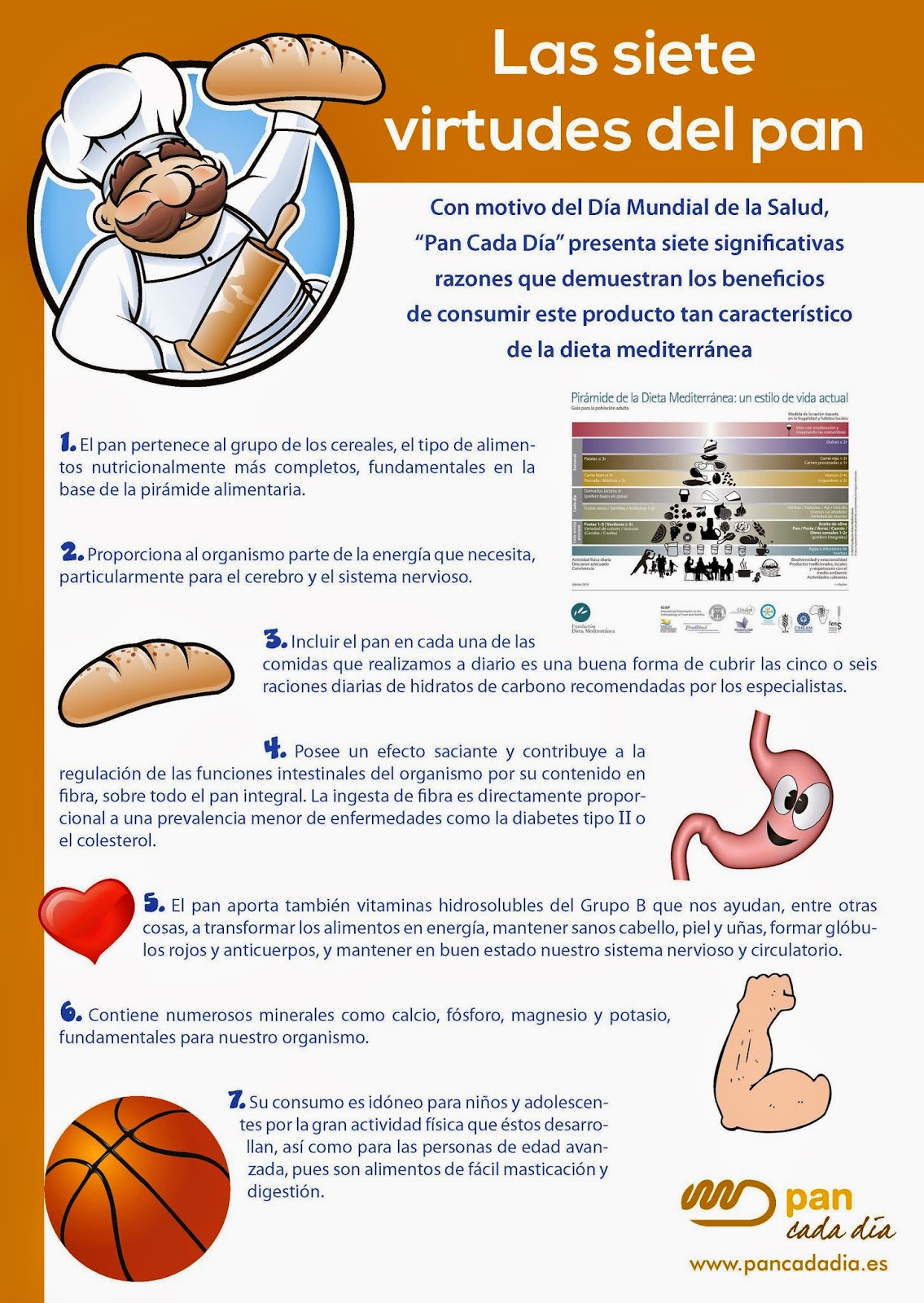 - ‘Pan Cada Día’ celebra el Día Mundial de la Salud con una infografía que repasa las diferentes propiedades y beneficios que proporciona la ingesta de pan