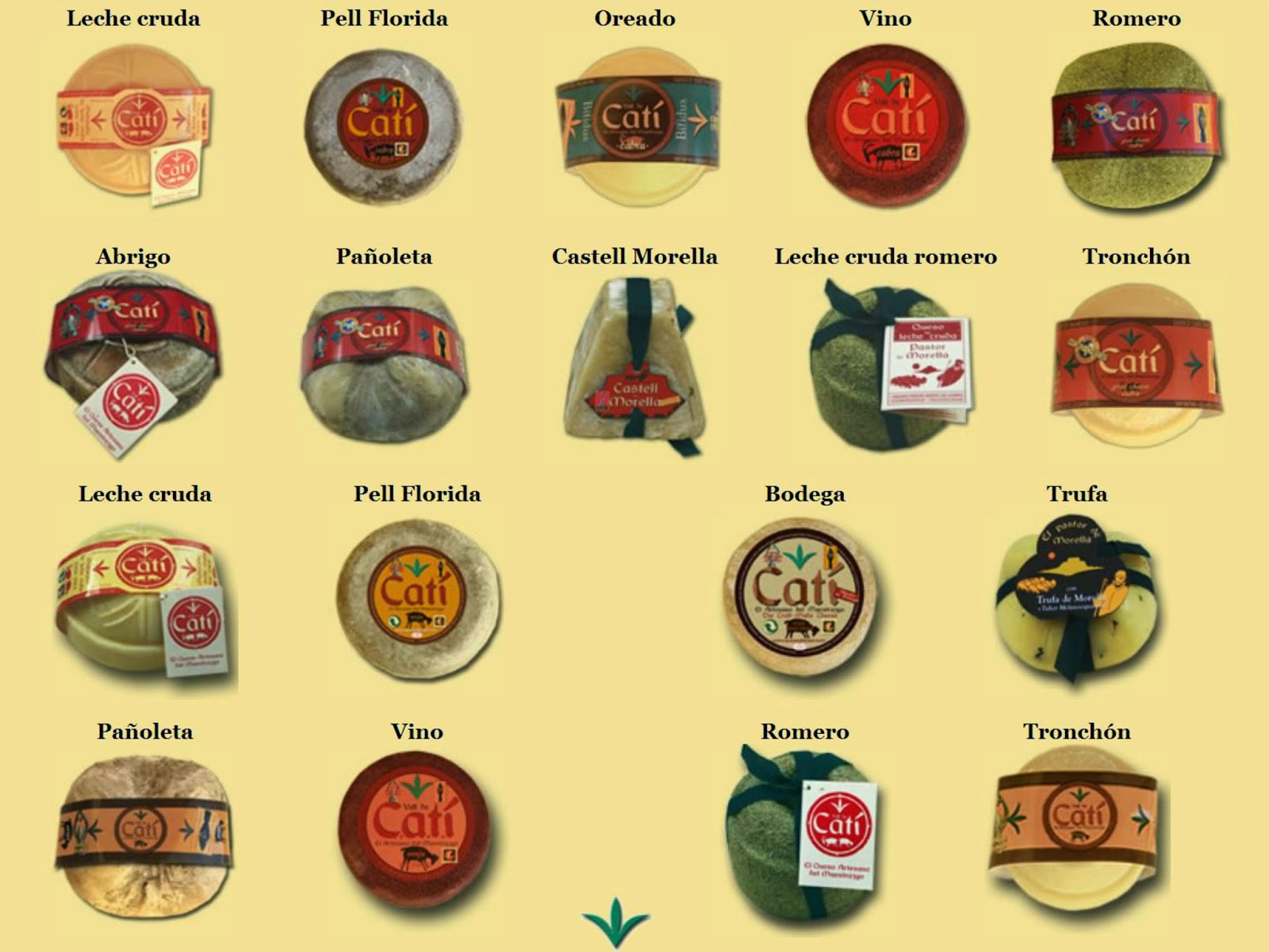 : el Catí Tronchón, el Pell Florida, el Tierno Oreado, el Tronchón de Leche Cruda, el Ecológico de Leche de Cabra y el Catí a la Trufa.