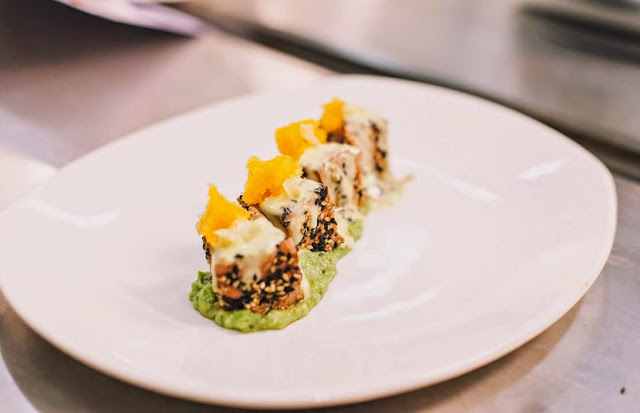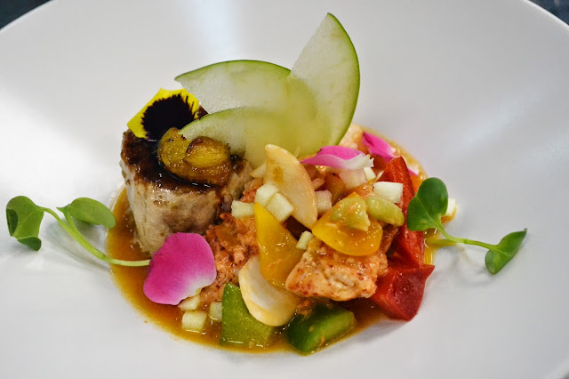 | Atún rojo con guacamole marino y pil pil de tomate |