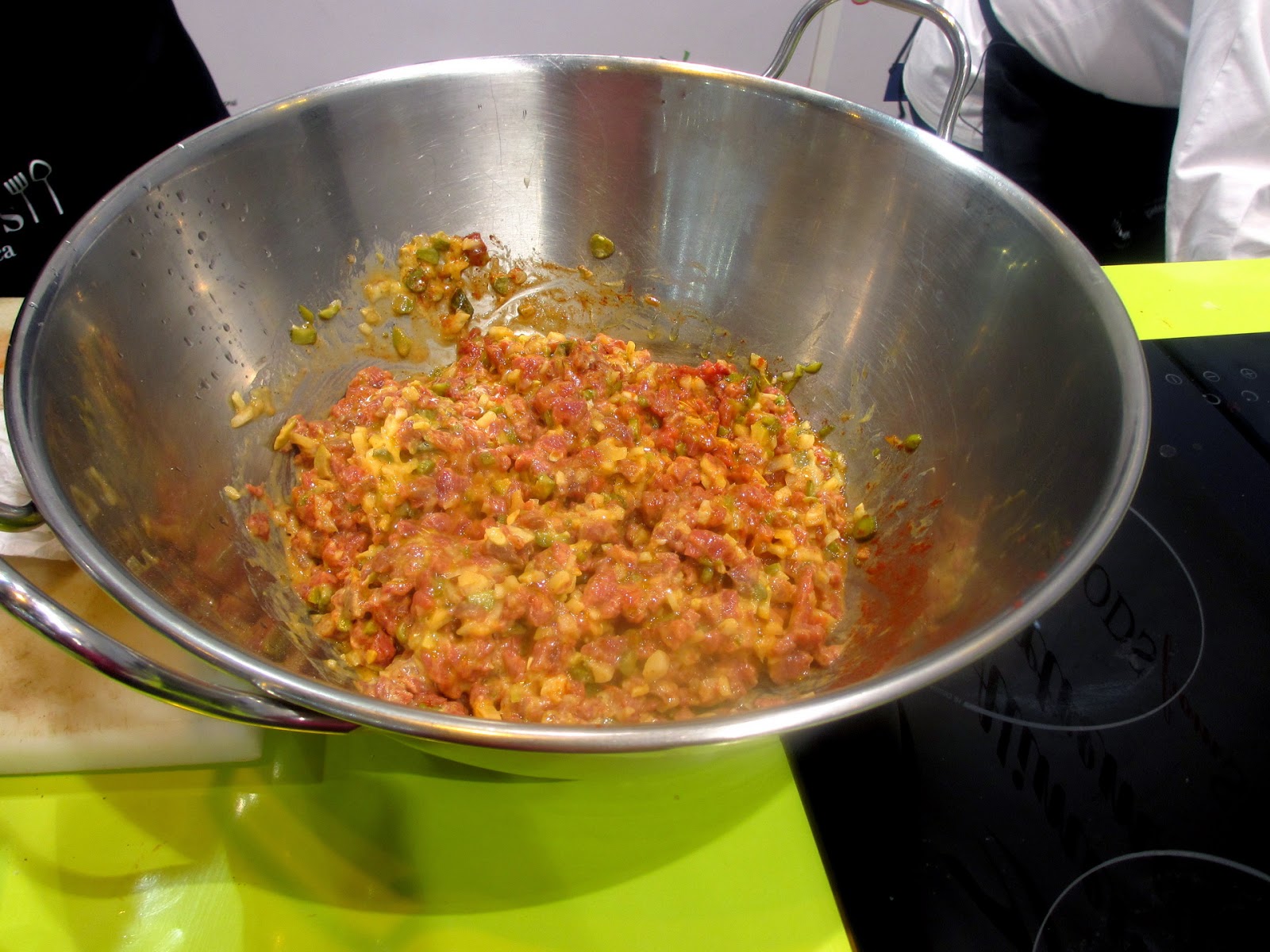 , junto a un solomillo de ternera, cebolla, pepinillo, sal, pimienta, mostaza y salsa de Tabasco entre otros ingredientes.