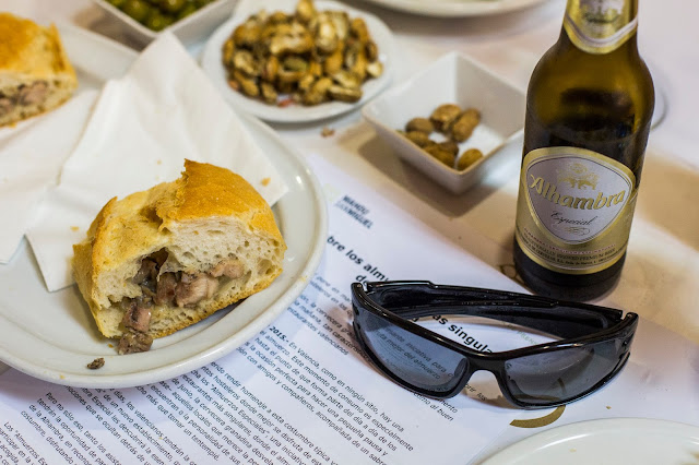 , donde un buen grupo de amigos y conocidos disfrutamos de los bocadillos más reconocidos de este local por su originalidad y sabor, como el de pollo guisado con cebolla, moruno con patatas y calamares con salsa; todos ellos bien acompañados de una